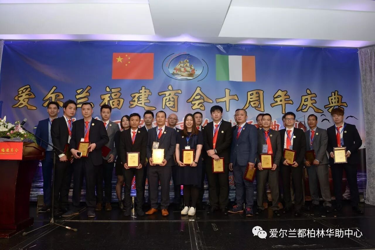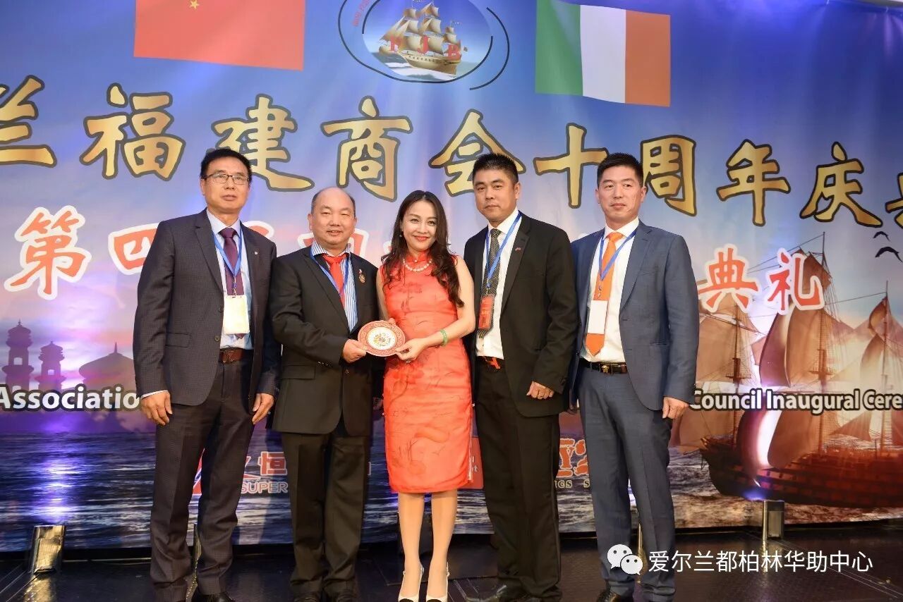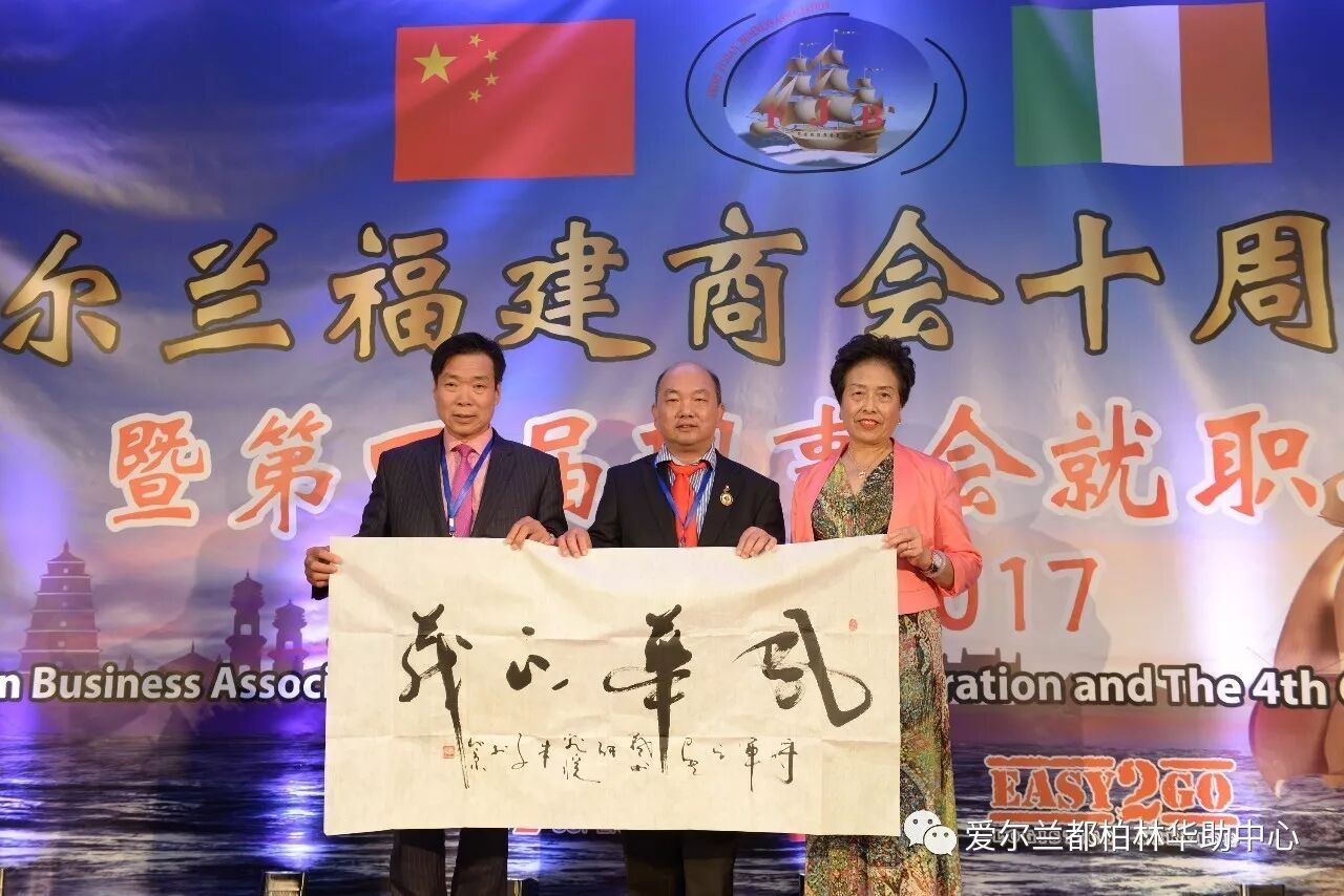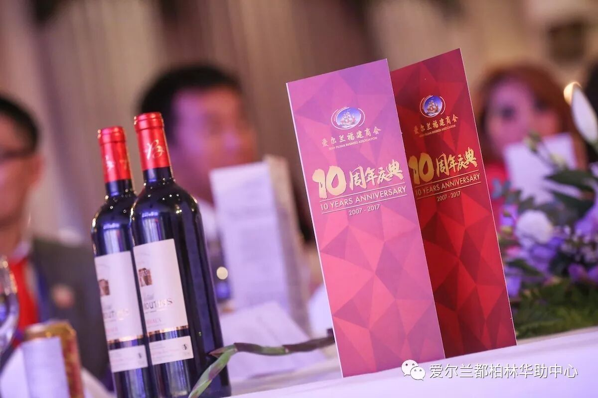 2017年9月26日晚,爱尔兰福建商会成立十周年庆典暨第四届理事会换届就职典礼在都柏林Clontarf Castle Hotel隆重举行,嘉宾政商云集,欢聚一堂。中国驻爱尔兰使馆岳晓勇大使、政务参赞杨华、商务参赞薛河女士、福建省侨联翁小杰副主席、爱尔兰前部长Conor Lenihan, Michael Finnerran、爱尔兰都柏林商会Bredan Foster作为主宾出席本次庆典,肯定了爱尔兰福建商会在服务侨民,推动中爱两国政治、经济、贸易、文化交流,推动国家发展和社会侨团和谐等诸多方面做出的贡献。