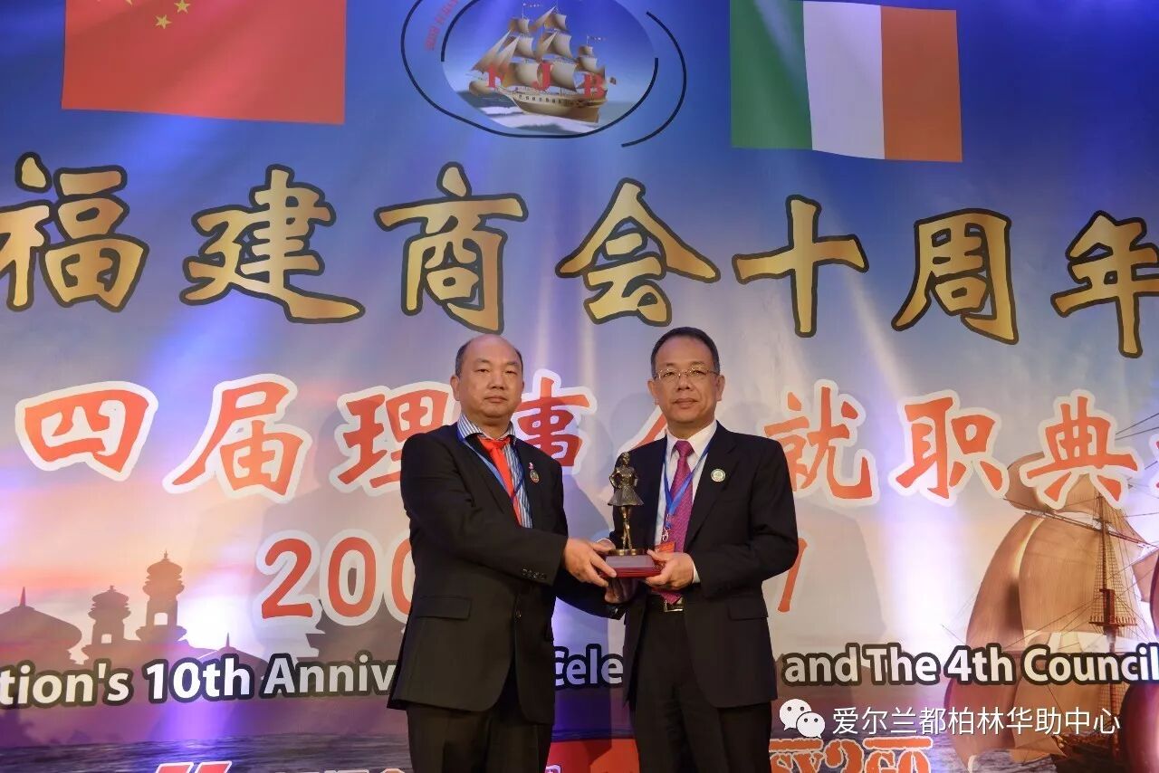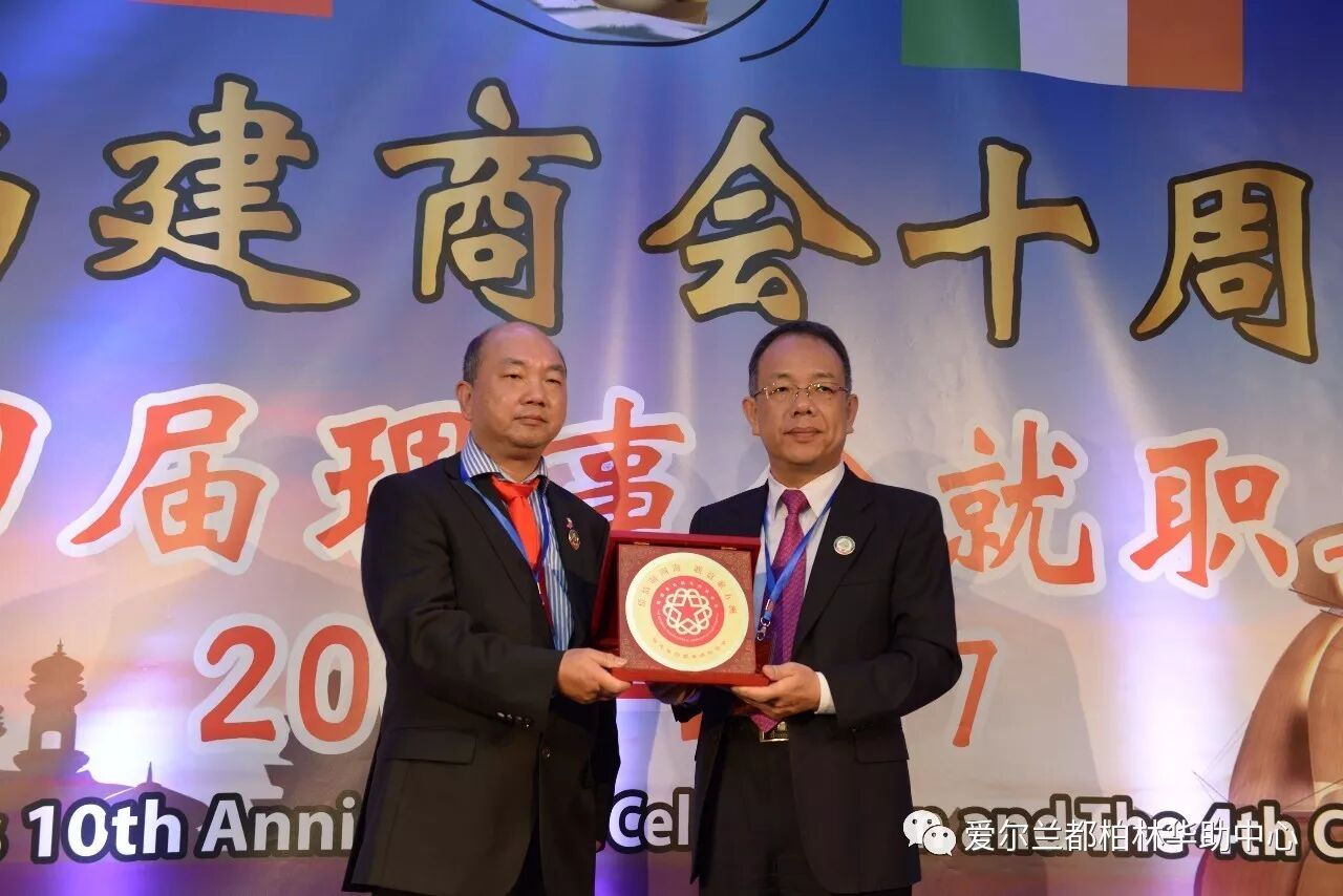 与此同时,为庆贺爱尔兰福建商会成立十周年以及新一届理事会履新,福州市侨联和福建南平市侨联分别向信任会长赠送了礼物。